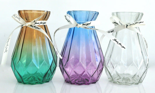 Rocwing Ribbed Glass Vase 15cm High Diamond Shape Multicolor