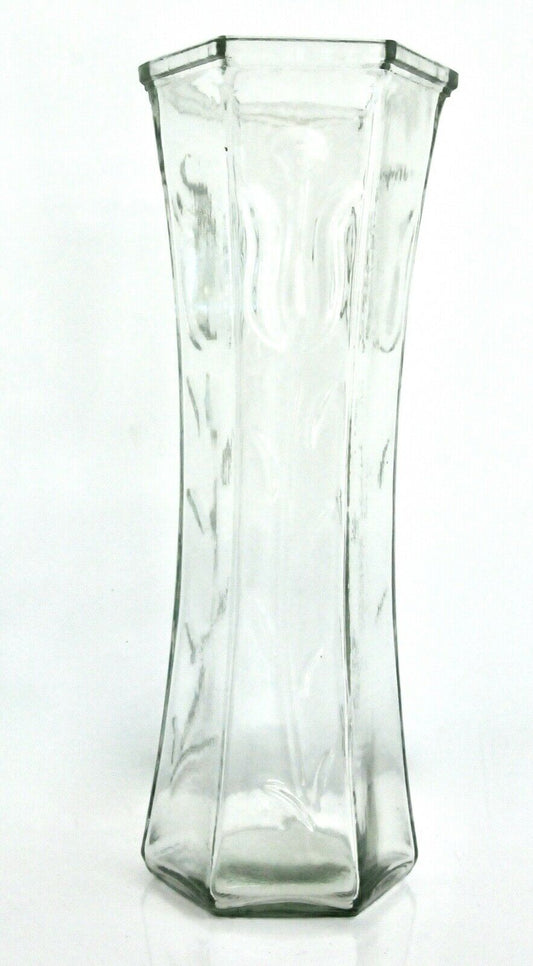 Rocwing Clear Glass Hexagon Vase 30cm High with Prominent Flowers and Plants